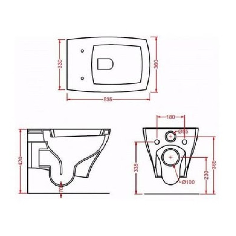 Описание подвесного унитаза Artceram Jazz (JZV001 03; 00) размер 360x540х420 мм вес 23 кг цвет - черный глянцевый материал - керамика подвесной монтаж горизонтальный выпуск Схема с размерами подвесного унитаза Artcera...