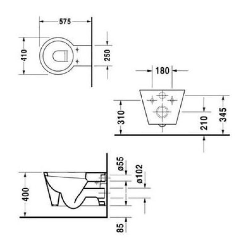 Схема с размерами подвесного унитаза Duravit Starck 1 (0210090064)
