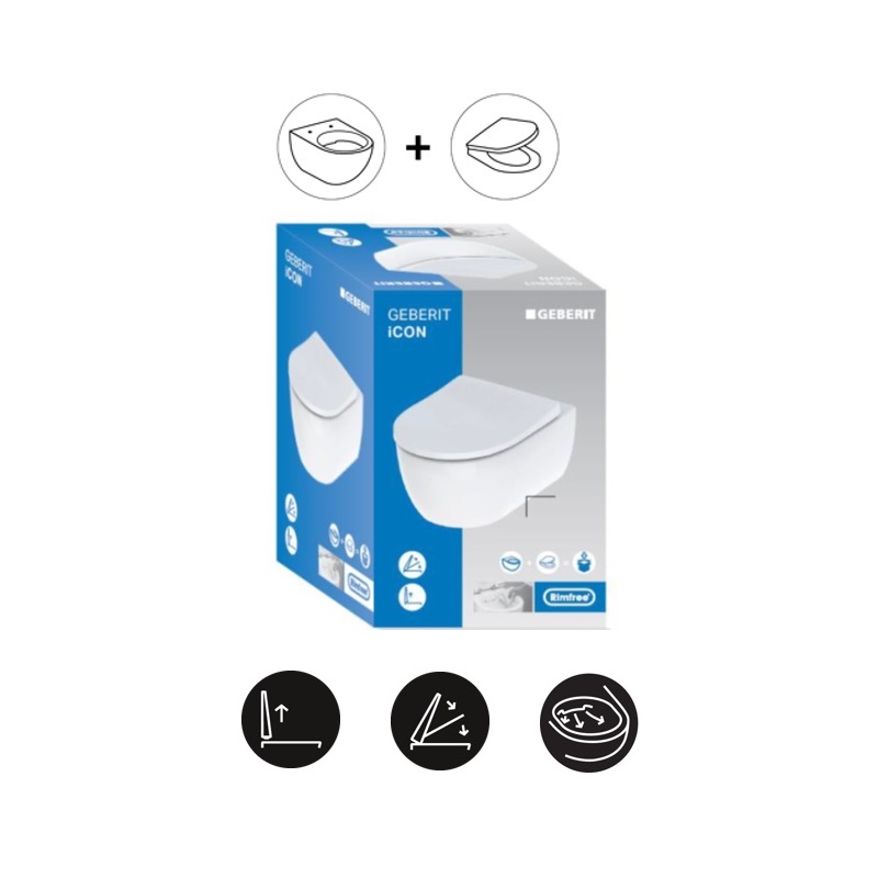 Актуальна ціна на Унітаз підвісний Geberit iCon 500.784.01.1 безобідковий із сидінням Soft Close — 8790.00 грн. Виробник: Geberit.