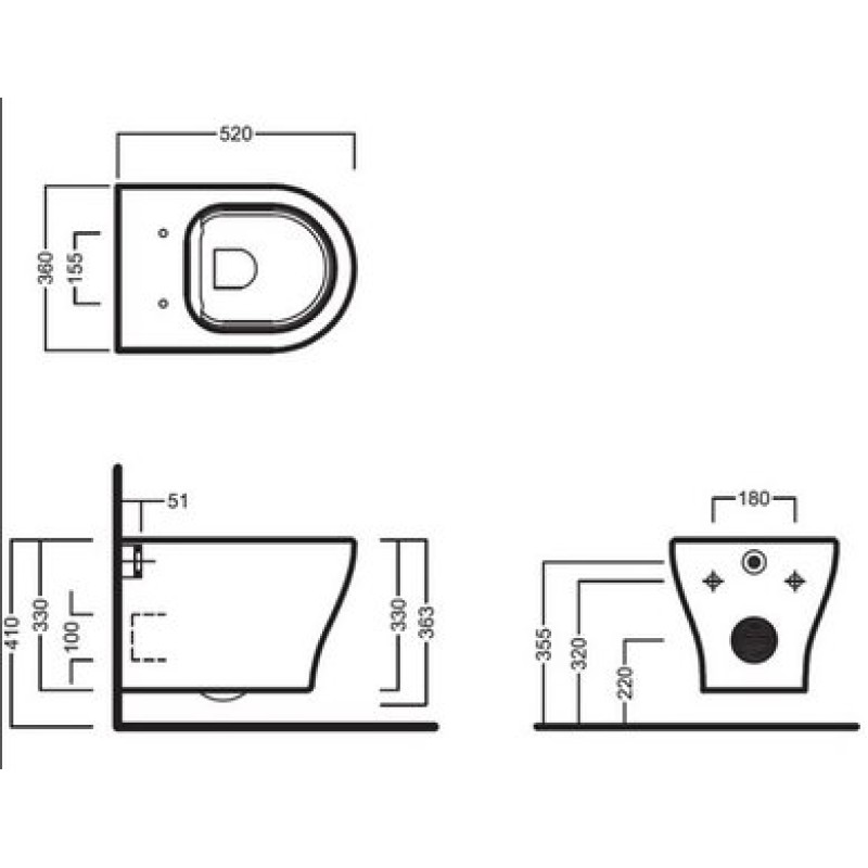 Описание подвесного унитаза Hatria Beat (Y1ZS01) размер 360x520х410 мм вес 25 кг цвет - белый глянцевый материал - сантехнический фаянс подвесной монтаж с горизонтальным смывом Схема с размерами подвесного унитаза Hatr...
