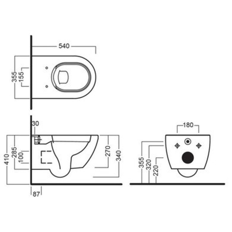 Описание подвесного унитаза Hatria Fusion Alchemy (A0Y1CC01) размер 355x540х410 мм вес 27 кг цвет - белый глянцевый материал - сантехнический фаянс подвесной монтаж с горизонтальным смывом Схема с размерами подвесного...