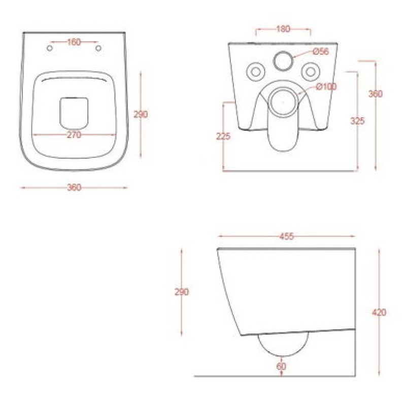 Описание подвесного унитаза Artceram A16 (ASV005 01; 86) размер 360x450х420 мм вес 18 кг цвет - белый глянцевый с декором материал - керамика подвесной монтаж горизонтальный выпуск безободковая чаша Схема с размерами п...