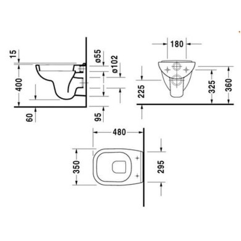 Схема с размерами подвесного унитаза Duravit D-Code (2211090000)