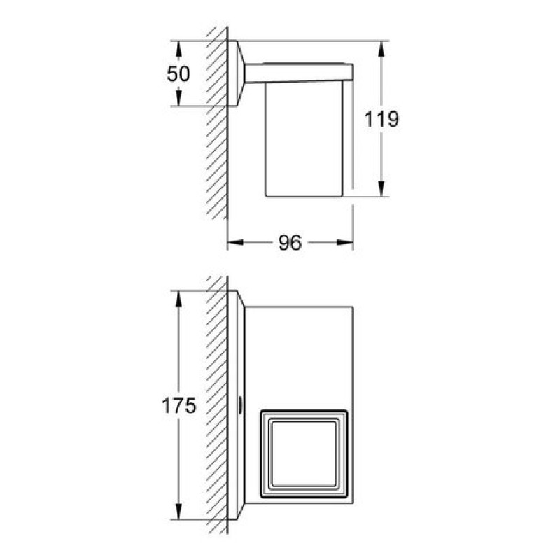 Схема с размерами полочки со стакананом для зубных щеток Grohe Allure Brilliant (40503000)