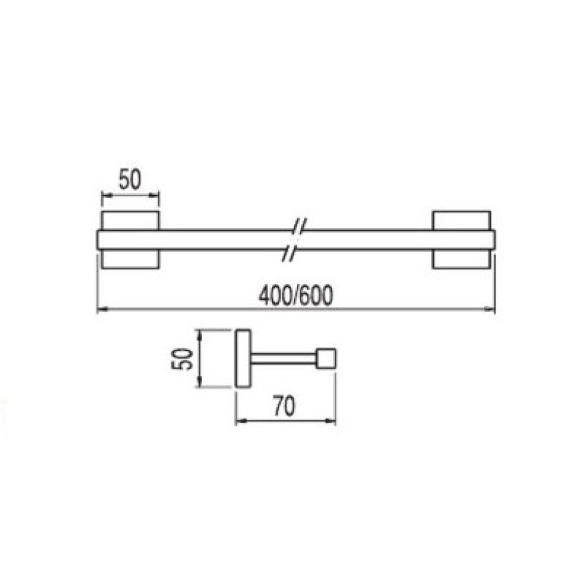 Чертеж с размерами полотенцедержателя Tres Cuadro Exclusive, 400 мм (10763601)