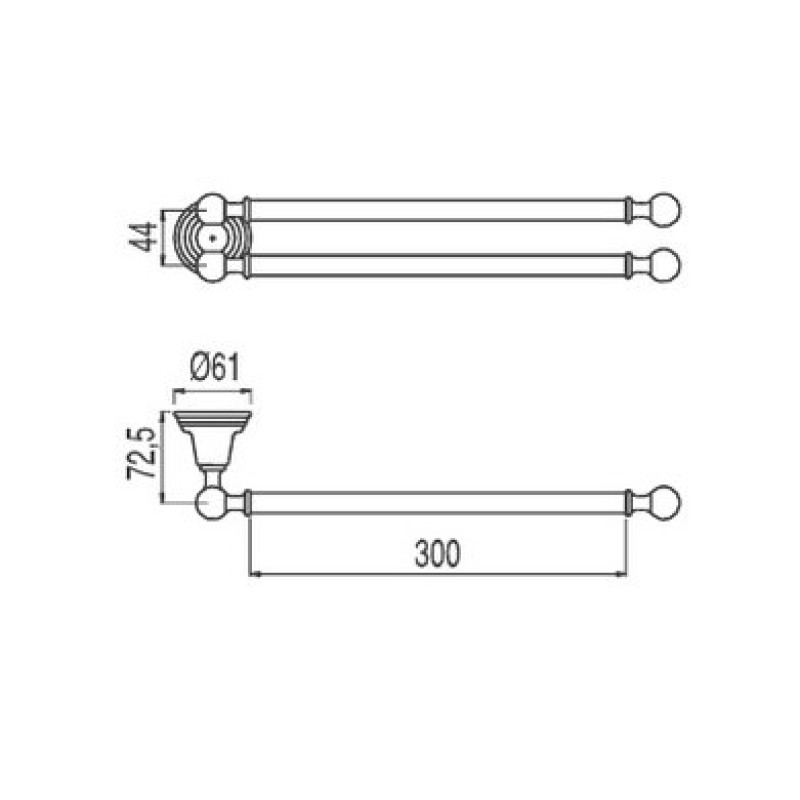 Описание полотенцедержателя Tres Tres-clasic (12463608) настенный монтаж длина 300 мм с двойной штангой цвет - хром Чертеж с размерами полотенцедержателя Tres Tres-clasic (12463608) ...