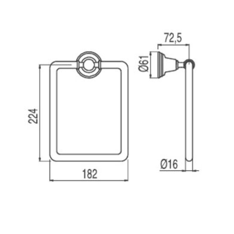 Чертеж с размерами полотенцедержателя Tres Tres-clasic (12463609)
