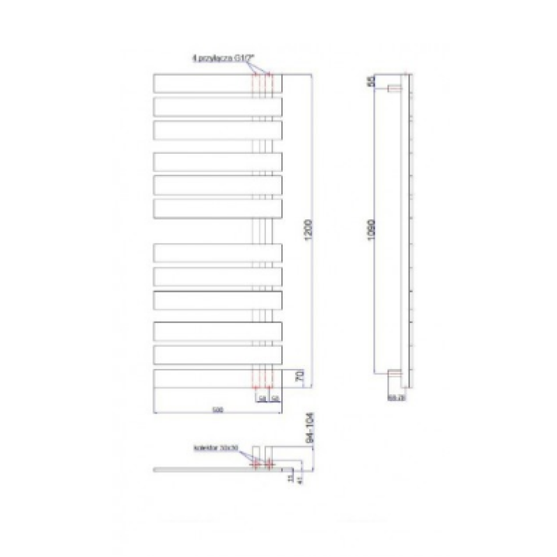 Тип полотенцесушителя полотенцесушителя: водяной/электрическийНаполнение: жидкостноеФорма: лесенкаШирина: 500 ммВысота: 1200 ммМощность: 657 ВтНижний подвод Материал: сталь