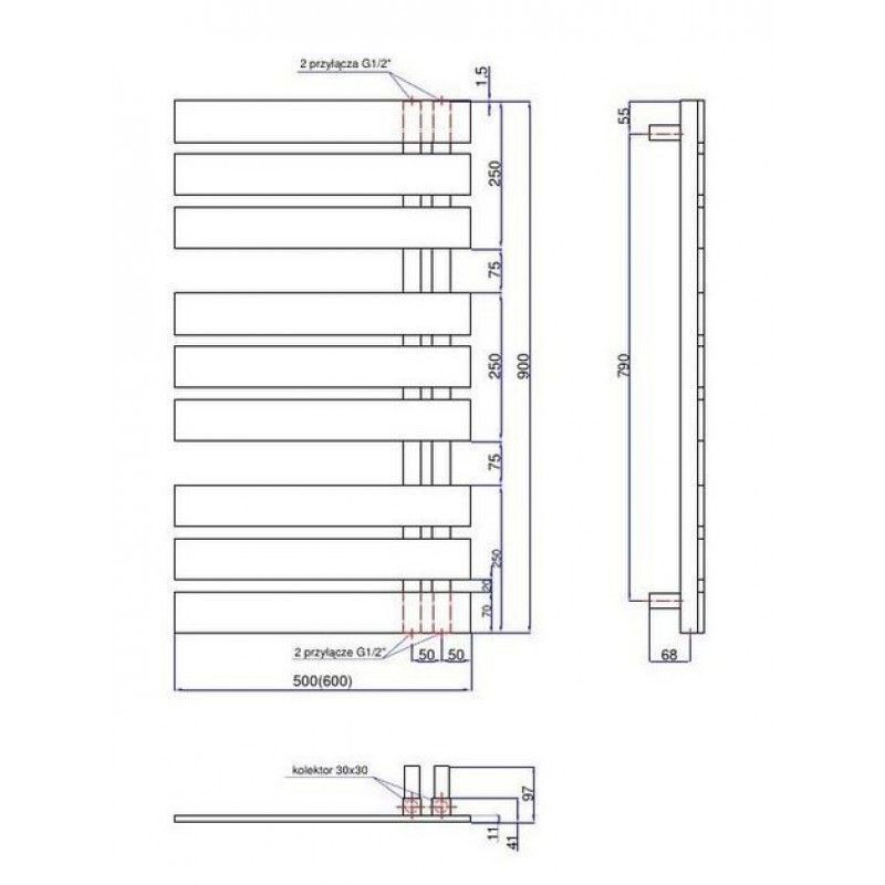 Тип полотенцесушителя полотенцесушителя: водяной/электрическийНаполнение: жидкостноеФорма: лесенкаШирина: 500 ммВысота: 900 ммМощность: 455 ВтНижний подвод Материал: сталь