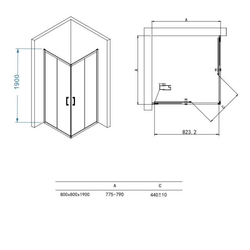 | Размер (ВхШхД), мм | 1900×800×800td> </tr> |