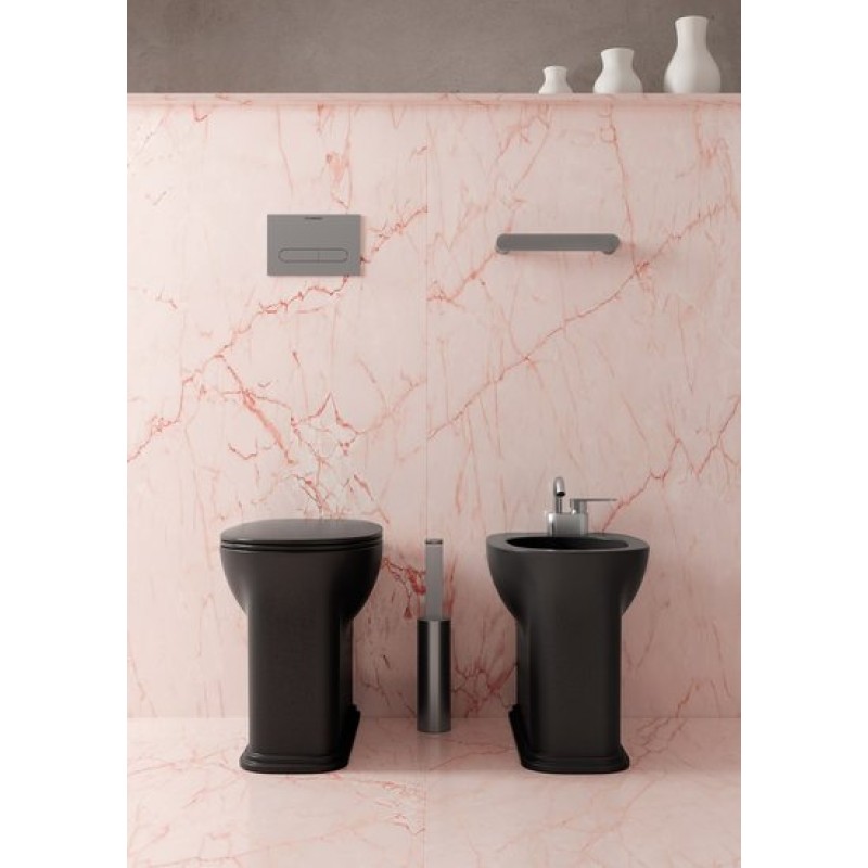 Описание напольного унитаза Flaminia Madre (MA117RG) размер 360x540х450 мм вес 30,5 кг цвет - черный глянцевый материал - керамика напольный монтаж с вертикальным или горизонтальным смывом комплект для крепления к полу ...