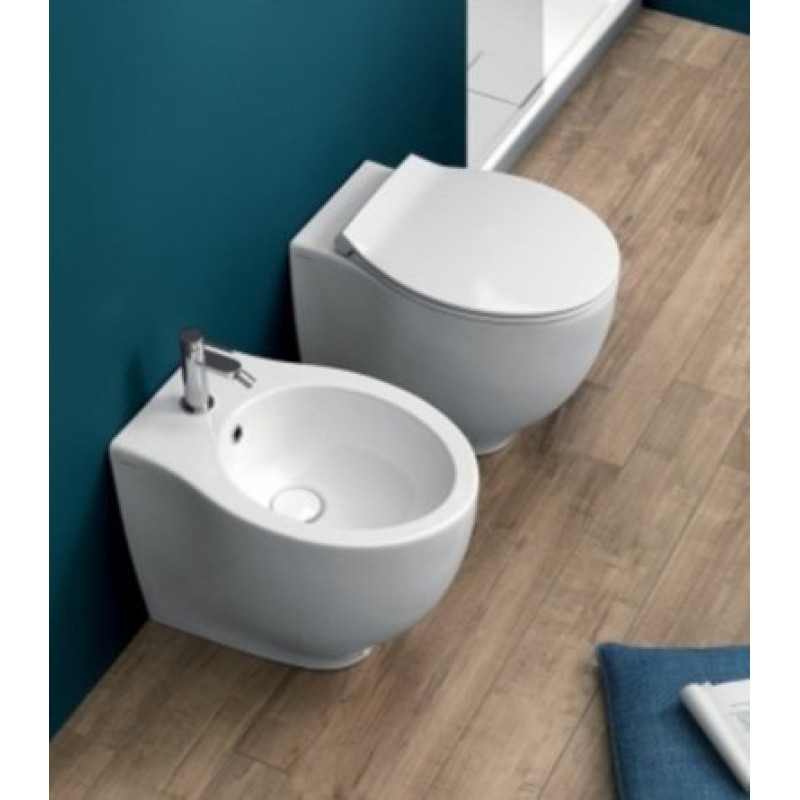 Описание напольного унитаза Hatria Le Fiabe (Y1E701) размер 370x555х420 мм вес 31 кг цвет - белый глянцевый материал - сантехнический фаянс безободковая чаша напольный монтаж с вертикальным смывом в комплекте система кр...