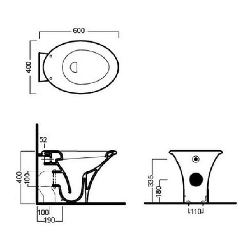 Описание напольного унитаза Hatria Sculture (YXZ301) размер 400x600х410 мм вес 29 кг цвет - белый глянцевый материал - сантехнический фаянс напольный монтаж с горизонтальным смывом Схема с размерами напольного унитаза ...