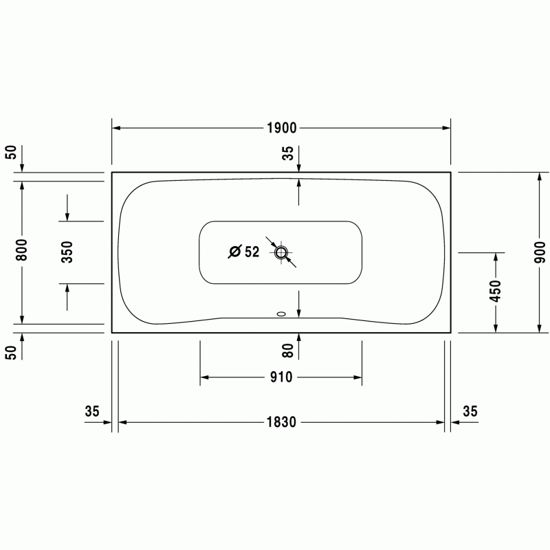 Duravit PuraVida ванна прямоугольная 190 см. Характеристики ванны:Ширина90 смГлубина46 смДлина190 смОбъем236 лВес30 кгМатериал: санитарный акрил
