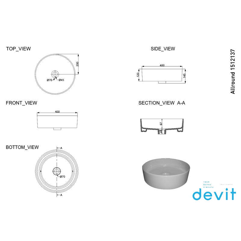Раковина Devit Allround 1512137 тонкостінна на стільницю — характеристики та опис