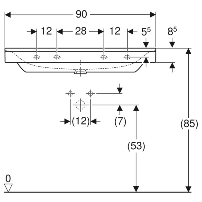 Раковина Geberit Xeno2 500.531.01.1 90 см без переливу — характеристики та опис