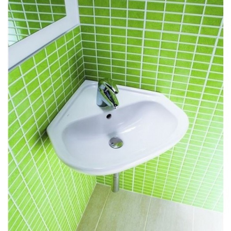 Умывальник с переливом и отверстием под смеситель предусмотрен для установки в угол (390 С) в ванную комнату. Формы умывальника округлые, что обеспечивает уют комнаты при этом умывальник смотрится современно. Умывальник сделан из керамики, белого цвета, чешского производителя Jika.