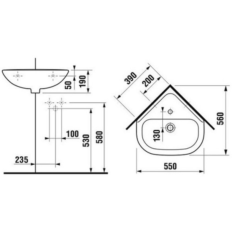 Умывальник с переливом и отверстием под смеситель предусмотрен для установки в угол (390 С) в ванную комнату. Формы умывальника округлые, что обеспечивает уют комна...