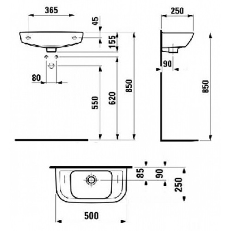 Раковина мини Laufen Pro B H8169570001061 отверстие для смесителя справа