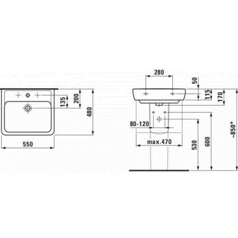 Умивальник Laufen PRO 550 мм H8189510001041 LAUFEN — характеристики та опис