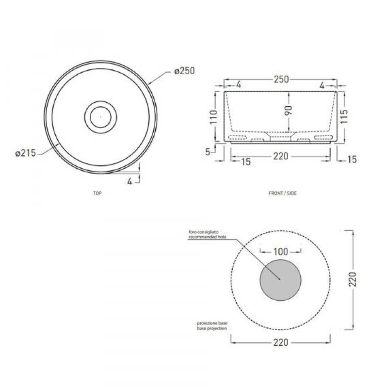 Раковина накладная 25 см Cielo Shui Comfort Minimo — характеристики та опис