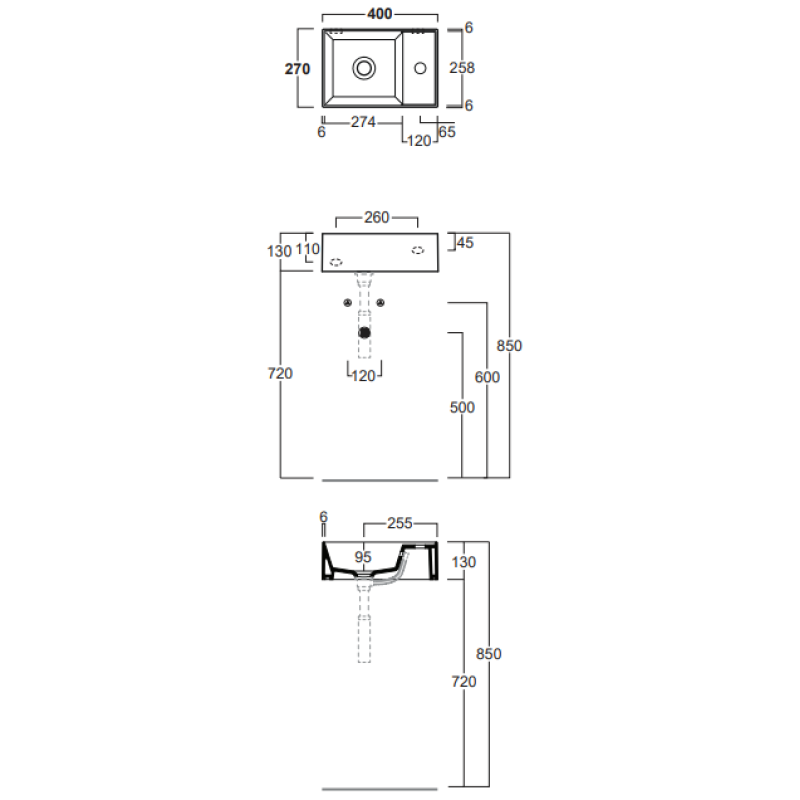 AG40 Раковина підвісна або накладна з 1 отв поличка з прав сторони білий глянець код 2954 Promo