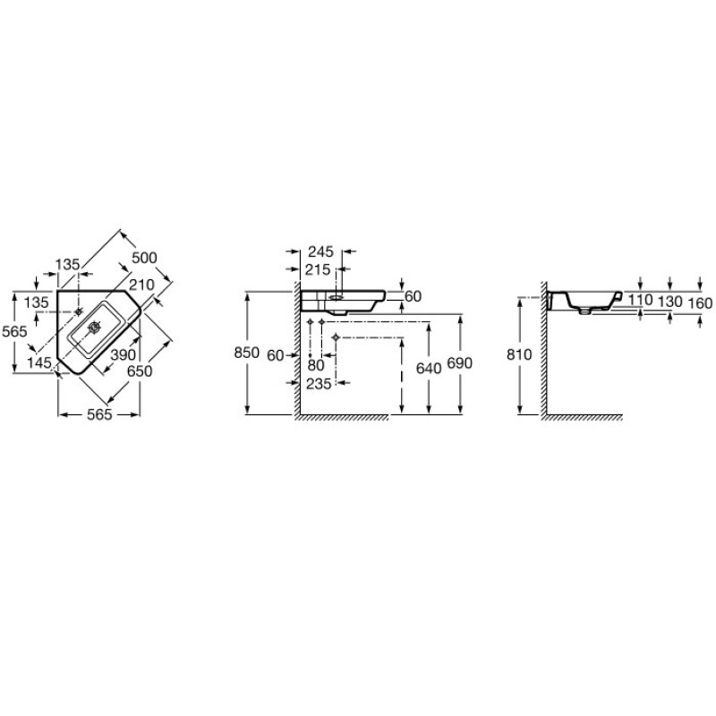 Раковина угловая Roca Dama-N A32778C000 — характеристики та опис