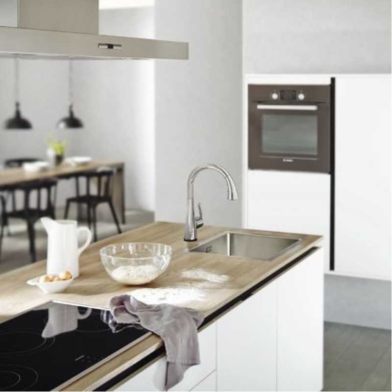 Простое включение одним прикосновением и элегантный стиль сочетаются в смесителе GROHE Zedra TouchПредставляем революционный смеситель GROHE Zedra Touch. Просто прикоснитесь к изливу, чтобы включить воду, а затем прикоснитесь еще раз, чтобы выключить ее. Инновационная технология EasyTouch гарантирует, что вам больше не придется прикасаться к смесителю запачканными руками и он всегда будет оставаться чистым, а надежная хромовая поверхность StarLight гарантирует, что ваш смеситель всегда будет выглядеть как новый. Однорычажный смеситель Zedra Touch с высоким изливом, диапазон вращения которого составляет 360˚, и выдвижной лейкой с двумя режимами струи подарит вам настоящее удобство на кухне. Картридж SilkMove гарантирует, что управление температурой и напором воды будет точным и плавным, а форсунки SpeedClean можно будет легко очистить от грязи или извести. Кроме того, Zedra Touch выполнена в элегантном дизайне, чтобы привнести в вашу современную кухню нотку классического стиля. Еще одним преимуществом смесителя является простая установка благодаря системе быстрого монтажа и ясным инструкциям.