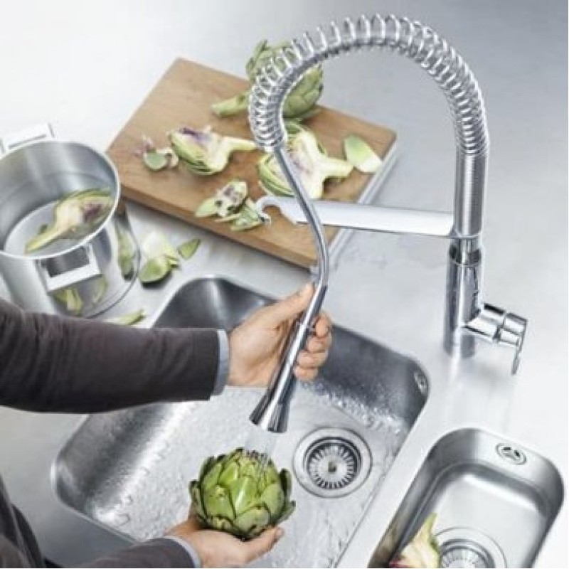 Соединившая в себе строгие, геометрически выверенные дизайнерские решения и практичные характеристики, коллекция K7 приобретет поклонников среди продвинутых кулинаров, согласных только на самое лучшее. В изогнутую спираль помещен гибкий шланг с лейкой, работающей в режимах аэрированной и широкой струи, а рычаг овальной формы, с применением технологии GROHE SilkMove®, обеспечивает четкое управление напором и температурой воды. Два варианта исполнения покрытия создают визуально различные модификации модели. Хромированное покрытие GROHE StarLight® придает изделию элегантный современный вид, а покрытие SuperSteel воплощает собой прочность и истинную роскошь этой коллекции. В интересах совместимости со всеми разновидностями моек и всеми вариантами планировки кухни, в данной коллекции представлен широкий выбор моделей смесителей на одно и два отверстия, со встроенной выдвижной лейкой или без нее. Для дополнительного удобства некоторые модели также оснащены дополнительной выдвижной лейкой с гибким шлангом.