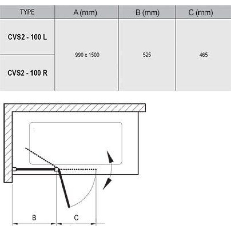 Шторка для ванни двохелементна CVS2-100 L Transparent, (7QLA0100Z1) RAVAK можна купити в нашому інтернет-магазині за ціною 18687.42 грн. Категорія: Шторки скляні для ванної.