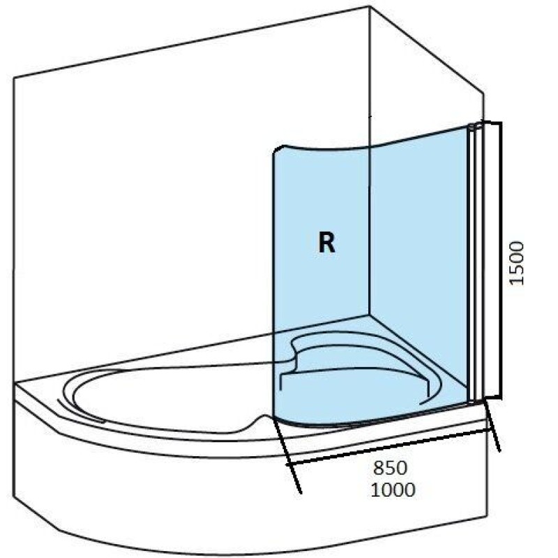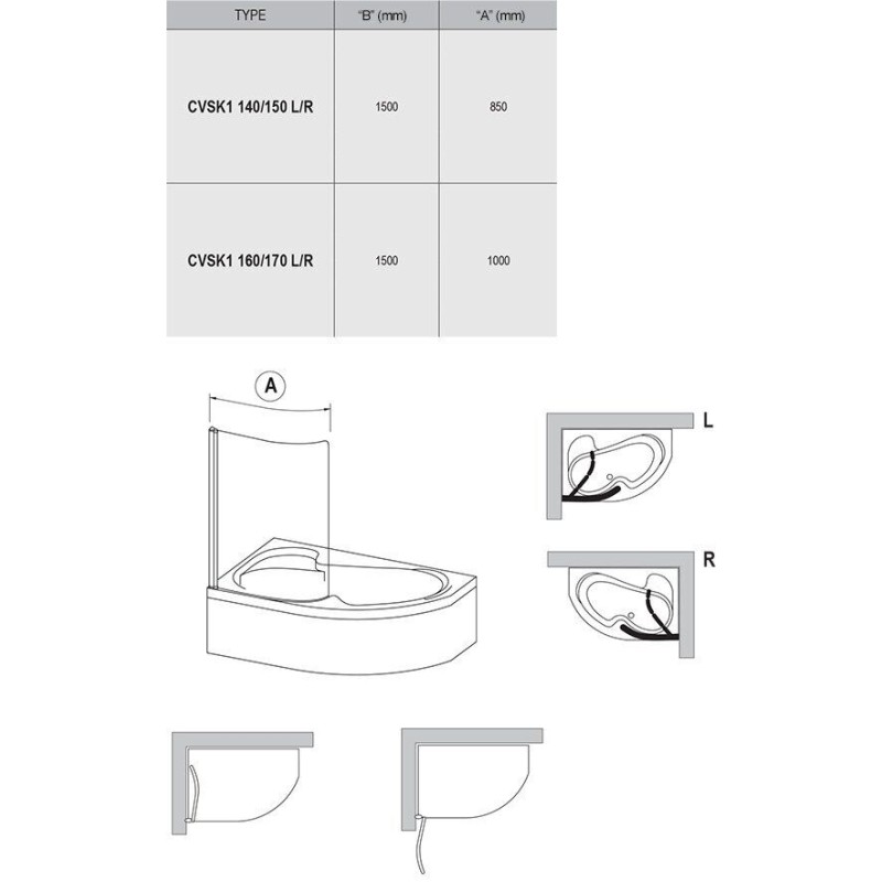 Плитка керамогранит Шторка для ванны Ravak CVSK1 ROSA 140/150 L Белый Transparent для пола