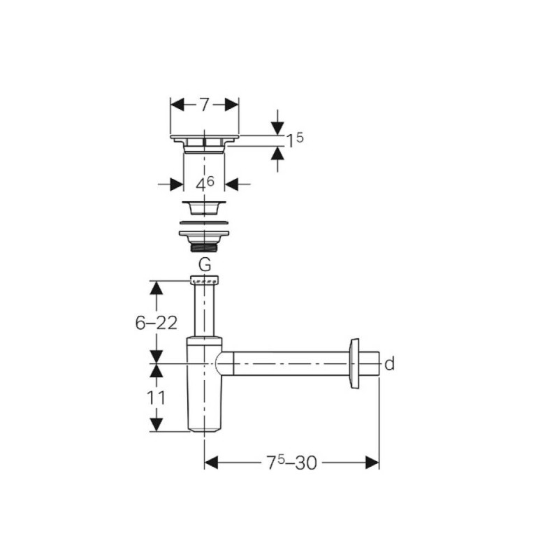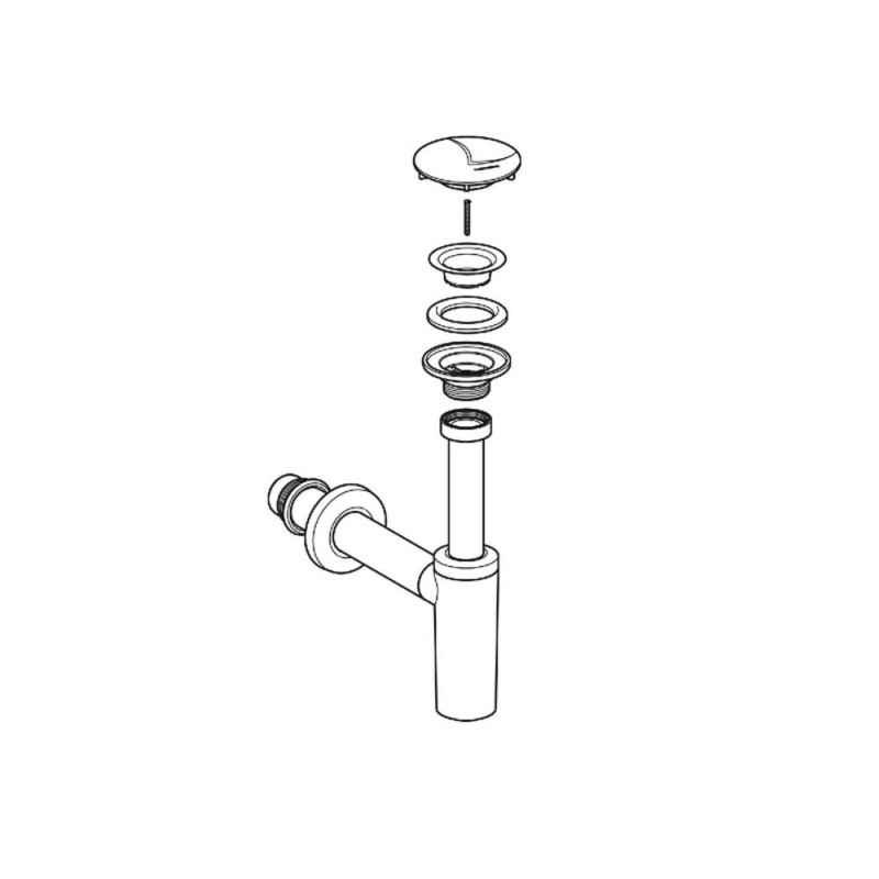 Сифон для раковини Geberit 151.020.21.1 із з'єднувальним елементом та кришкою зливного отвору, хром глянцевий — характеристики та опис