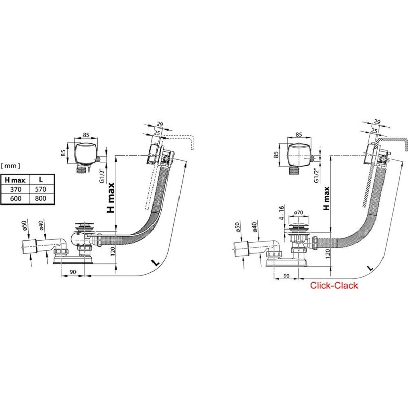 Сифон для ванны Ravak с заполнением переливом 570 Полуавтомат Хром
