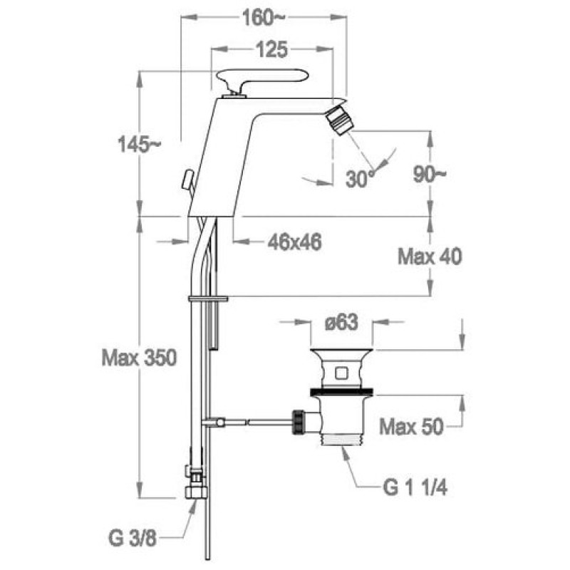 Схема смесителя для биде Fir Dynamica 88 (88.2526.5.10.00)
