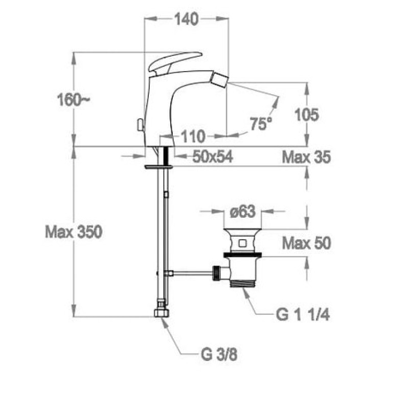 Схема смесителя для биде Fir Synergy Open 93 (93.2101.1.10.00)