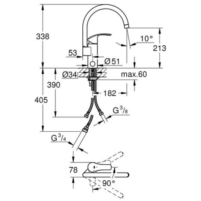 Описание однорычажного смесителя для мойки Grohe Eurosmart (33490002)