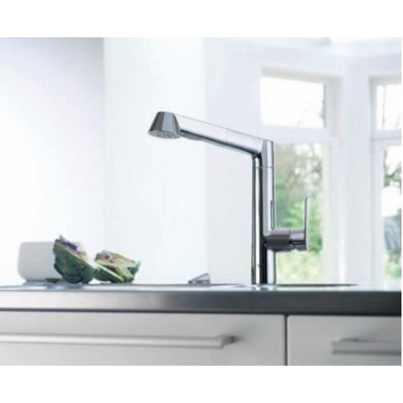 Соединившая в себе строгие, геометрически выверенные дизайнерские решения и практичные характеристики, коллекция K7 приобретет поклонников среди продвинутых кулинаров, согласных только на самое лучшее. В изогнутую спираль помещен гибкий шланг с лейкой, работающей в режимах аэрированной и широкой струи, а рычаг овальной формы, с применением технологии GROHE SilkMove®, обеспечивает четкое управление напором и температурой воды. Два варианта исполнения покрытия создают визуально различные модификации модели. Хромированное покрытие GROHE StarLight® придает изделию элегантный современный вид, а покрытие SuperSteel воплощает собой прочность и истинную роскошь этой коллекции. В интересах совместимости со всеми разновидностями моек и всеми вариантами планировки кухни, в данной коллекции представлен широкий выбор моделей смесителей на одно и два отверстия, со встроенной выдвижной лейкой или без нее. Для дополнительного удобства некоторые модели также оснащены дополнительной выдвижной лейкой с гибким шлангом