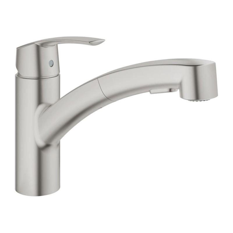 Небольшое пространство на кухне - это не проблема для однорычажного смесителя для кухни GROHE Start, который спроектирован, чтобы предложить вам отличное качество и плавную работу даже в самых небольших кухнях. Этот смеситель легко установить, а диапазон поворота его излива составляет 90˚, что позволит избежать ударов излива о шкаф или стены. Выдвижная лейка с 2 режимами струи поможет в выполнении многих задач, начиная от наполнения кастрюль и заканчивая уборкой. А когда вы завершите действие, лейка вернется на место благодаря системе GROHE EasyDock. Поддержание смесителя в чистоте тоже несложное дело: силиконовые душевые форсунки чистятся одним прикосновением благодаря системе SpeedClean. Технология GROHE SilkMove гарантирует плавность управления температурой и потоком воды, а система GROHE Zero с ее внутренними разделенными водными каналами гарантирует, что питьевая вода не будет соприкасаться с никелем или свинцом. Стильное матовое покрытие GROHE в цвете "суперсталь", устойчивое к царапинам, надежно и долговечно.