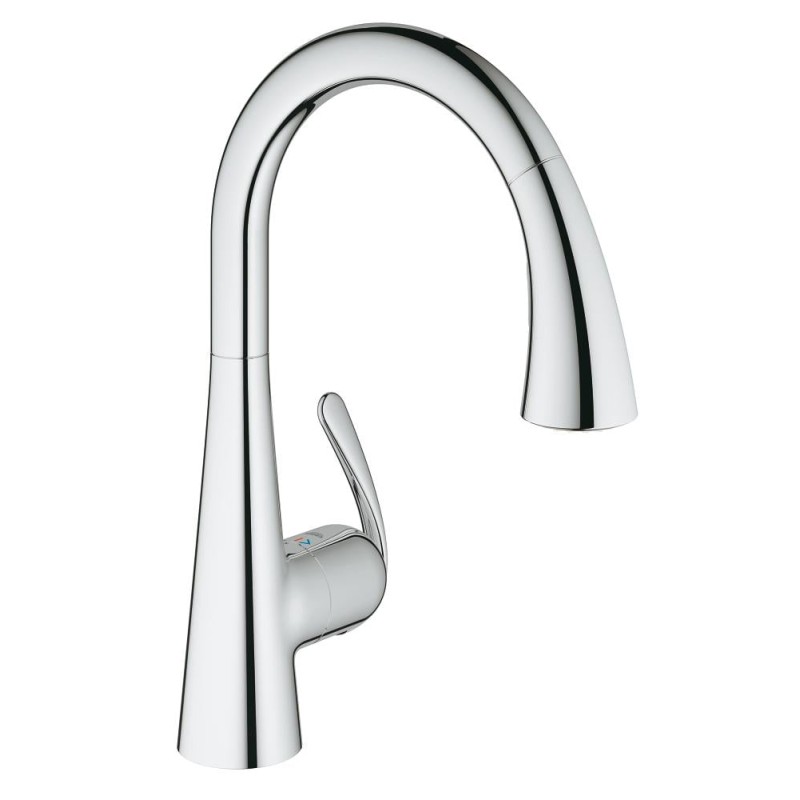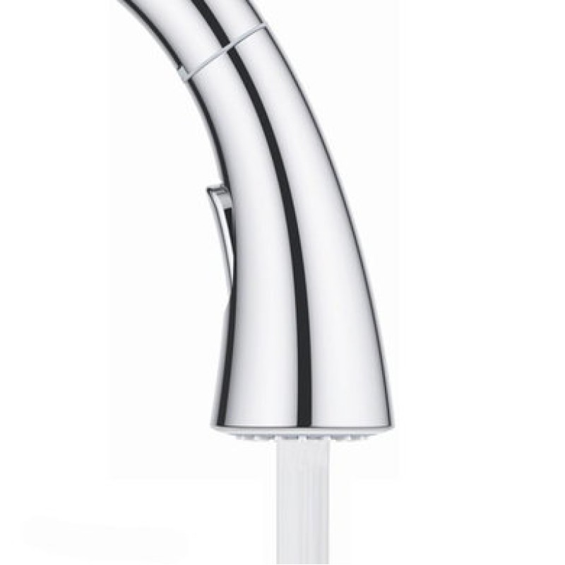 Смеситель для кухни с высоким изливом и выдвижной лейкой повышенной комфортностиМытье, ополаскивание и очистка с непринужденной точностью не будут составлять труда владельцам смесителя для кухни GROHE Zedra с выдвижной лейкой повышенной комфортности. Этот смеситель отличается обтекаемыми формами и эстетичной конструкцией рычага, а также бескомпромиссно высокими рабочими показателями. Выдвигающаяся вниз лейка обеспечивает максимальную свободу движений для любых задач, будь то наполнение кастрюли для варки спагетти или мытье помидоров для приготовления соуса. Для мытья салатной зелени достаточно нажать на кнопку для переключения в мощный турборежим струи. Вы также убедитесь в том, что гладкое хромированное покрытие данного смесителя чрезвычайно легко содержать в чистоте. Достаточно быстро протереть его салфеткой – и оно вновь засияет. Смеситель GROHE Zedra – практичный, эстетичный и демонстрирующий великолепное качество – станет для Вас первоклассным выбором.
