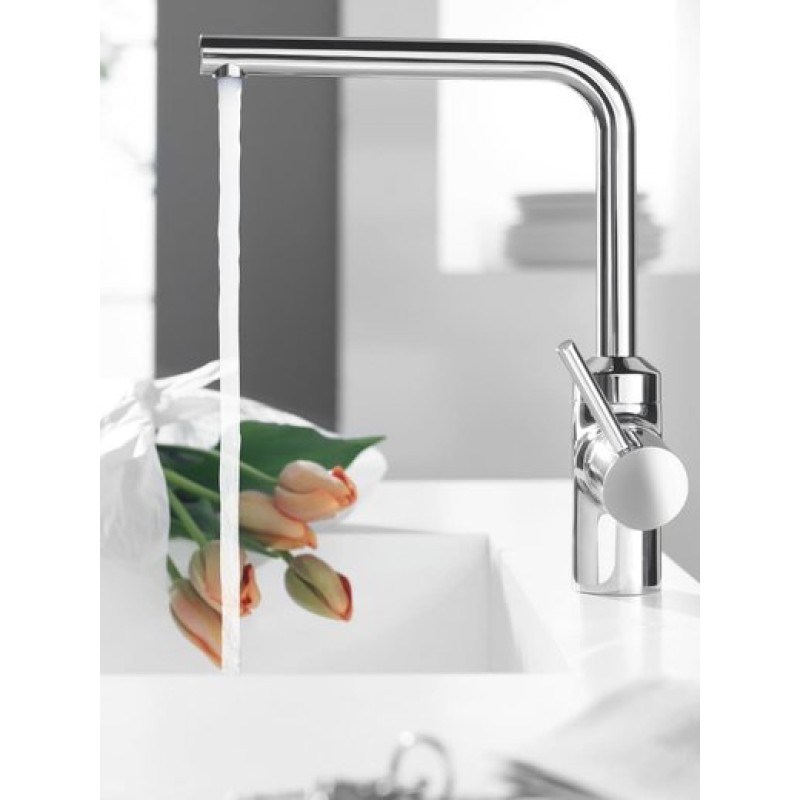 Плавные линии и простой дизайн придают этому смесителю оттенок экстравагантности. Идеальный вариант для современной кухни в стиле минимализма. Поворачиваемый на 360° излив обеспечивает дополнительный комфорт и свободу. Длина излива может увеличиваться до 760 мм. Выдвижная часть, выполненная из латуни, гарантирует качество, долговечность и удобство в использовании.