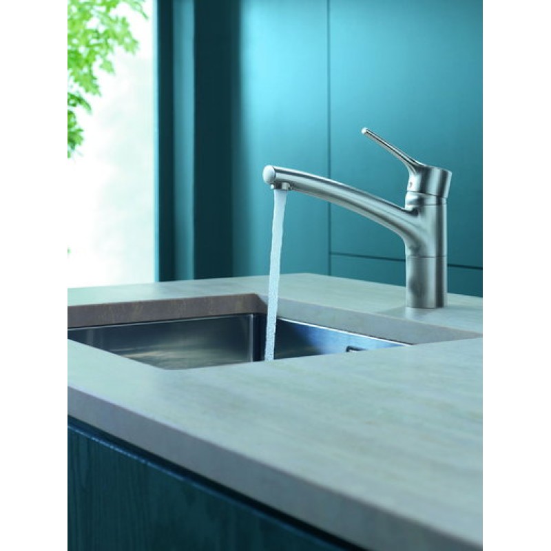 Смеситель KLUDI TRENDO STAR - это звезда в повседневной кухонной жизни. Эта серия привлекает внимание не только своим функциональным изливом, но и разнообразием вариантов, например, с дополнительным краном для подключения стиральной или посудомоечной машины, с байонетным креплением и с выдвижным изливом с функцией душа. Благодаря спрятанному в изливе аэратору образуется визуальное единство с формой смесителя.- однорычажный, литой рычаг