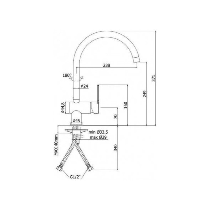 высота до излива 249 мм