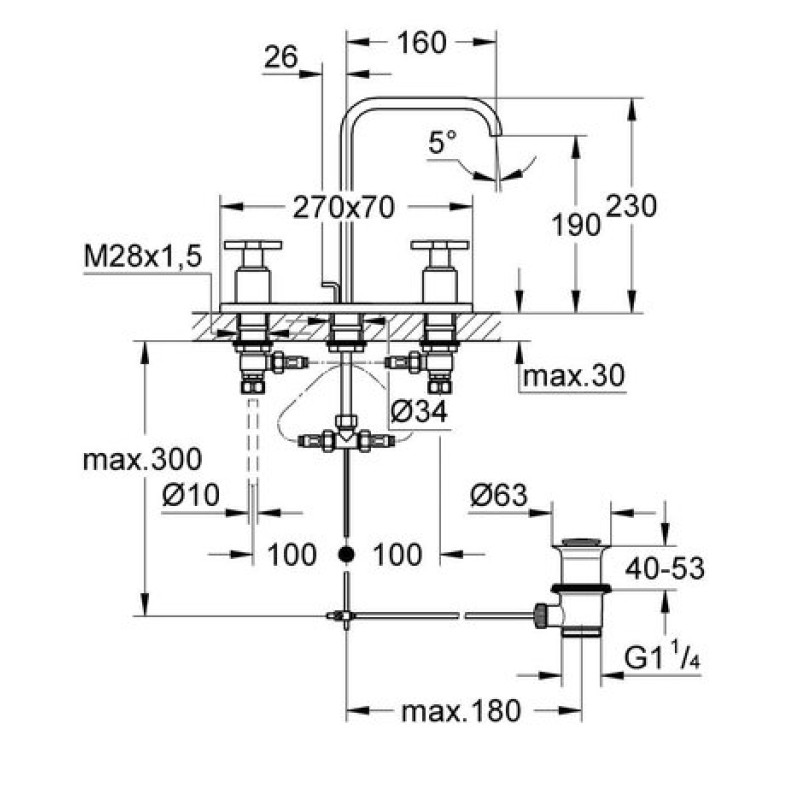 Схема с размерами смесителя для раковиныGrohe Allure (20143000)