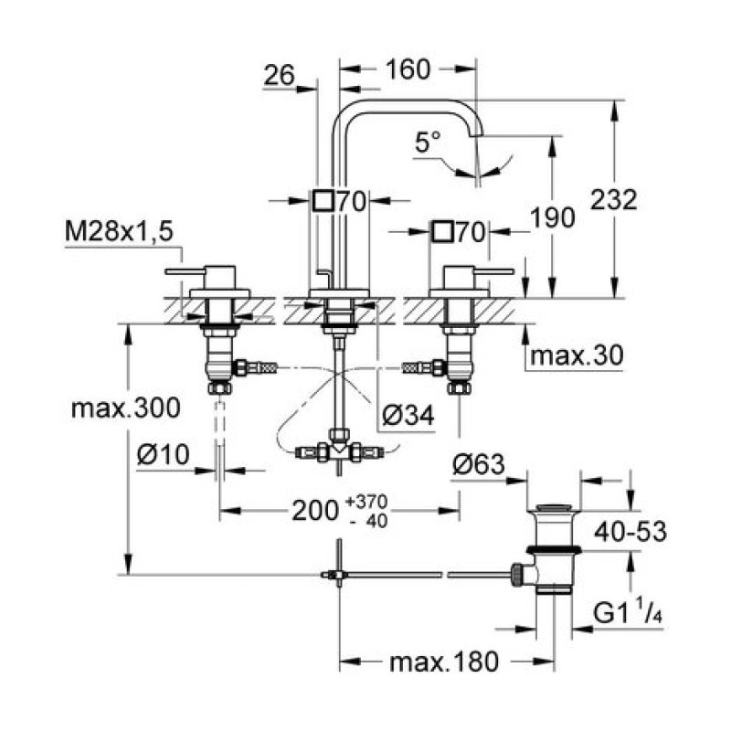 Схема с размерами смесителя для раковины Grohe Allure (20188000)