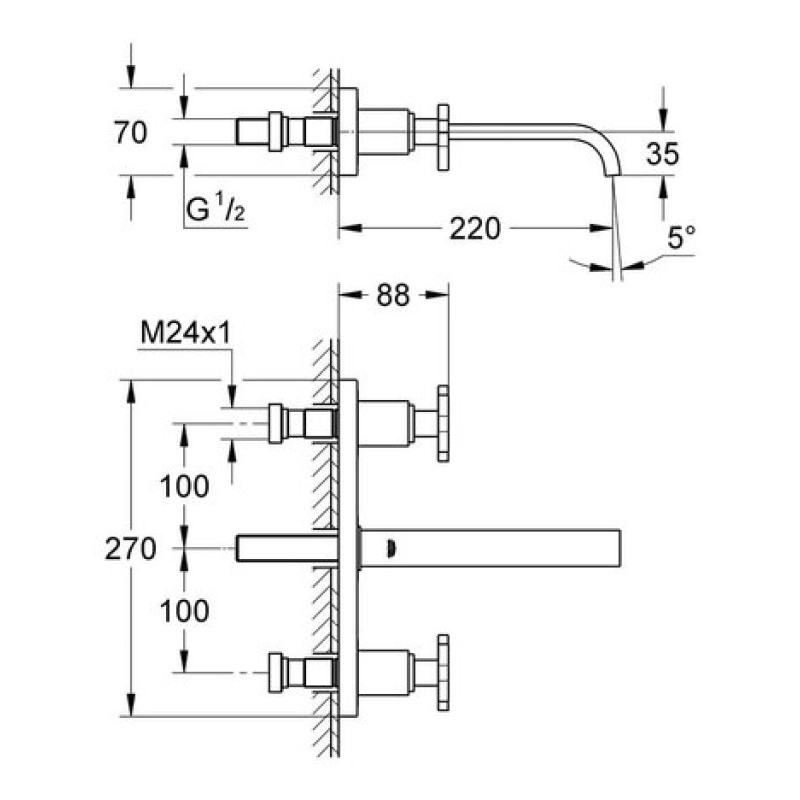 Схема с размерами смесителя для раковины Grohe Allure (20192000)