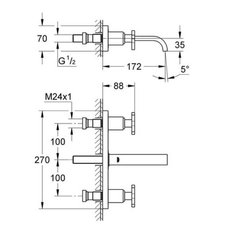 - смеситель (без комплекта скрытого механизма 32706000)
