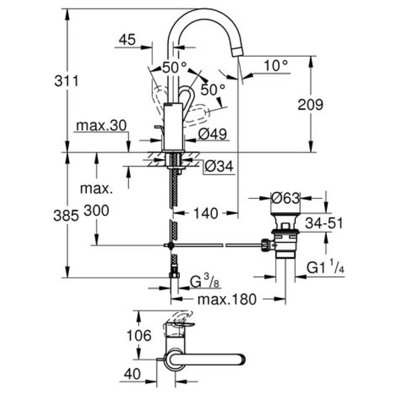 Описание однорычажного смесителя для раковины Grohe Bau Loop L-Size (23763000)