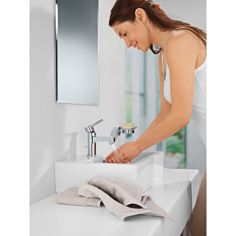 Технология GROHE SilkMove® ES не только обеспечивает плавный ход рычага, но и помогает рационально использовать воду и электроэнергию. Рабочее положение рычага по центру отныне обеспечивает подачу только холодной воды, и при этом нельзя повернуть рычаг вправо. В результате расход энергии, в тех случаях, когда можно прекрасно обойтись холодной водой - например, ополоснуть зубную щетку или руки, - снижается. Увеличенный угол поворота рычага влево до 90 градусов обеспечивает подачу горячей воды, а также позволяет надежно и безопасно регулировать напор и температуру горячей воды.