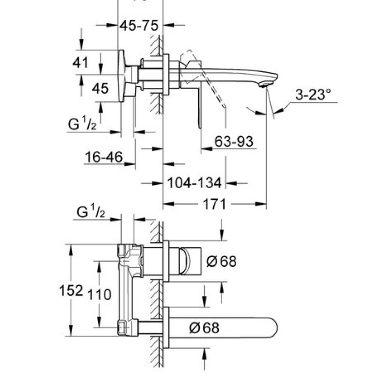 Описание однорычажного смесителя для раковины на два отверстия Grohe Eurostyle cosmopolitan S-Size (19571002)