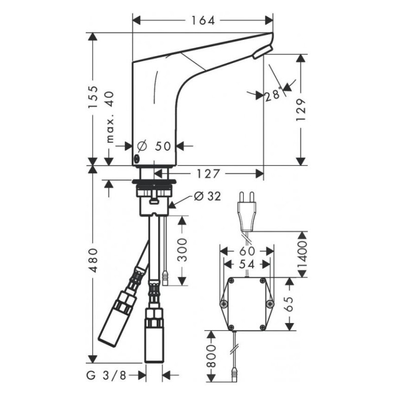 - вид соединения: соединительные шланги G ⅜